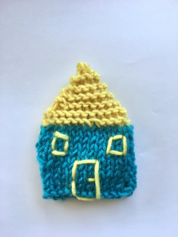 These little homes are made by knitting 2 house shapes then sewing them together. Here's how to make a house shape: